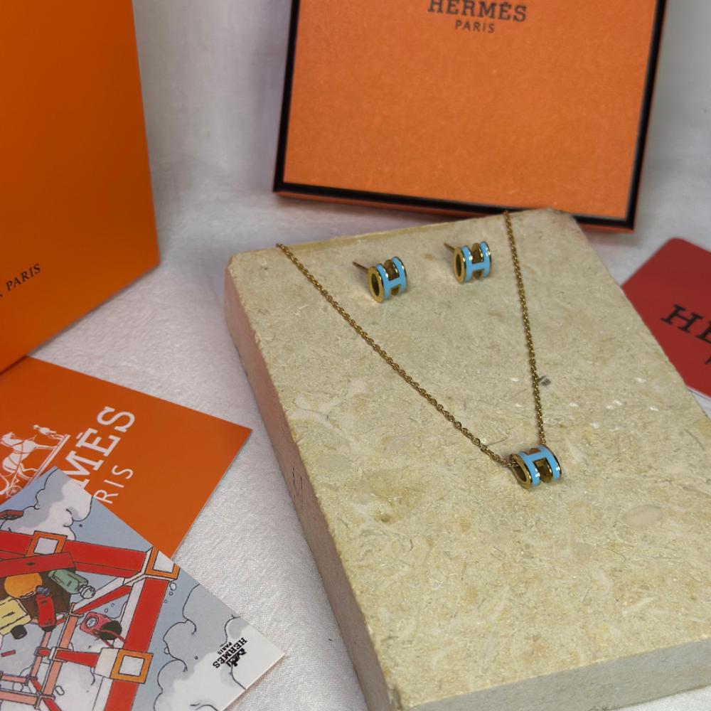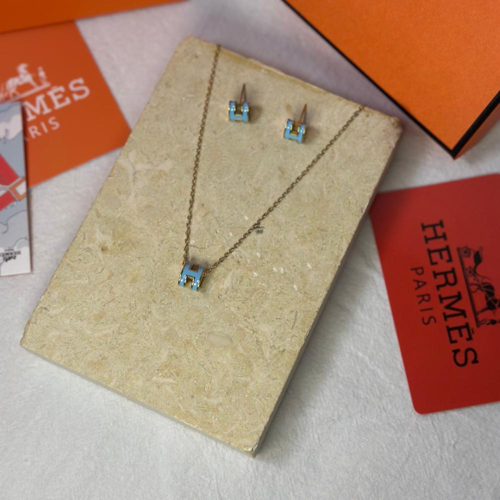 سلسال وحلق سماوي انيق ، مصنوع من خامة الاستيل المضادة للصدى تضمن لك استخدام يومي بدون قلق من تغيّر اللون . خيار عملي وجميل يكمل إطلالتك بكل بساطة!